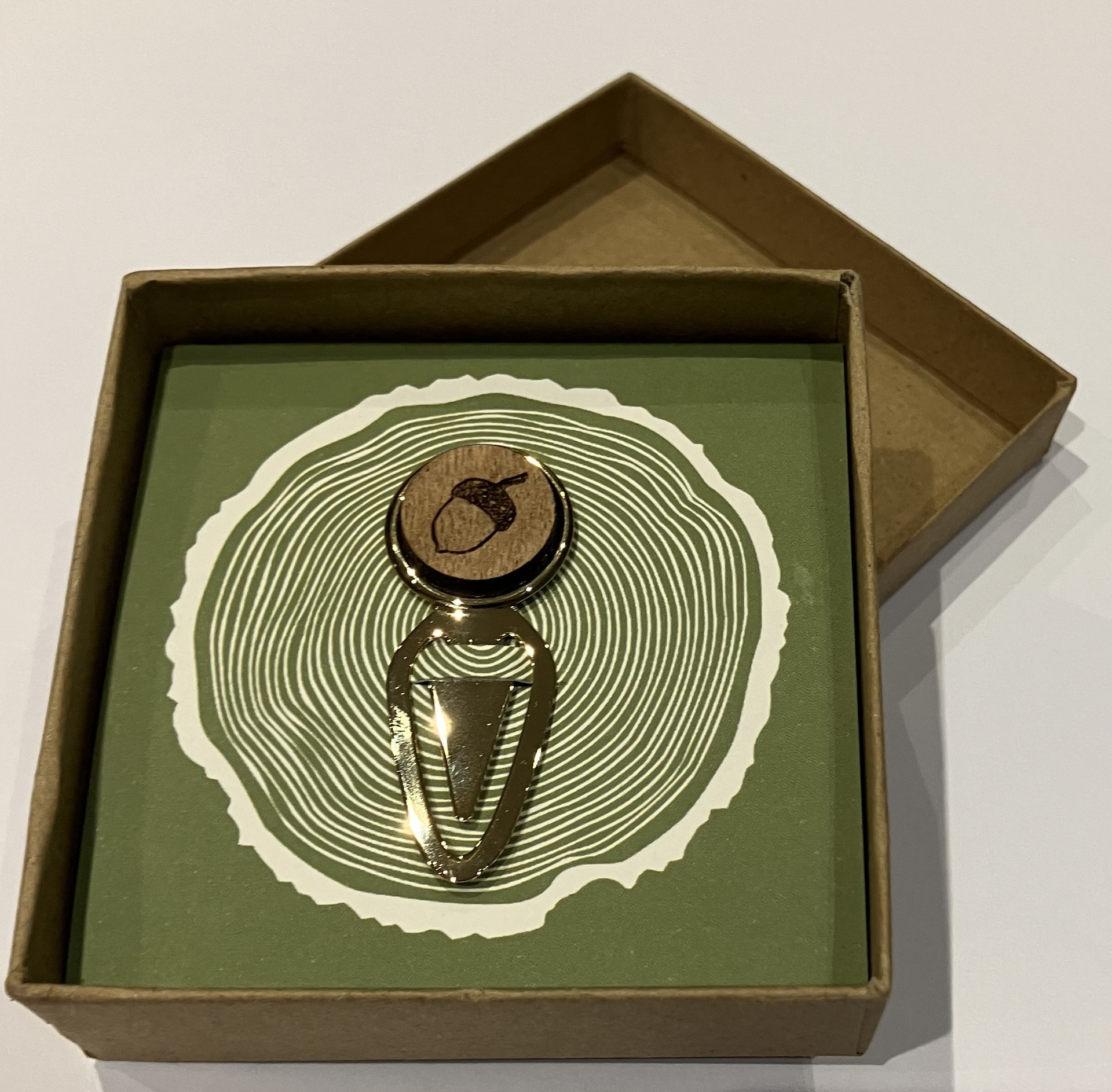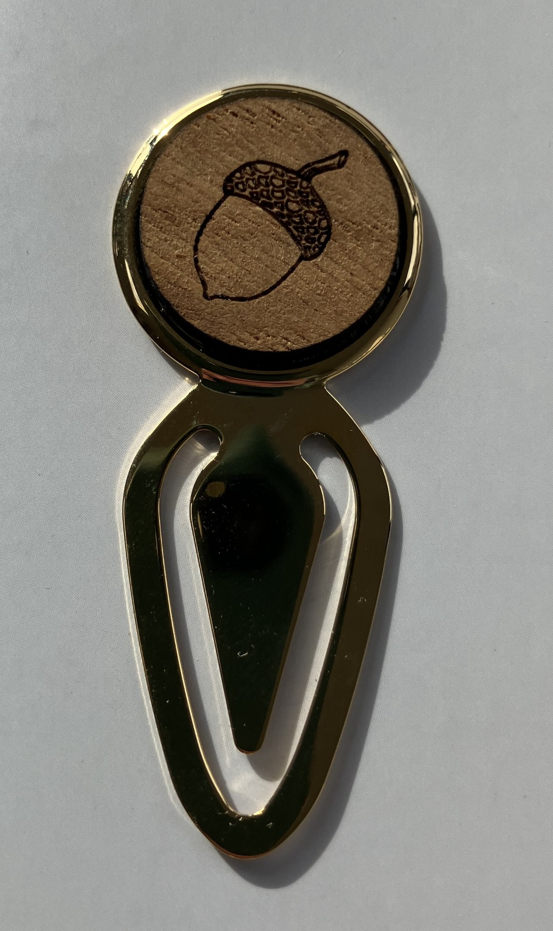 Bookmark insert are hand finished from Bog oak and native Irish wood mounted on gold plated or chrome bookmarks. You can select from a range of options for engraving on the wooden insert including a persons initials, first name, company logo or a selection of nature images. The bookmark is delivered in a lovely presentation box.